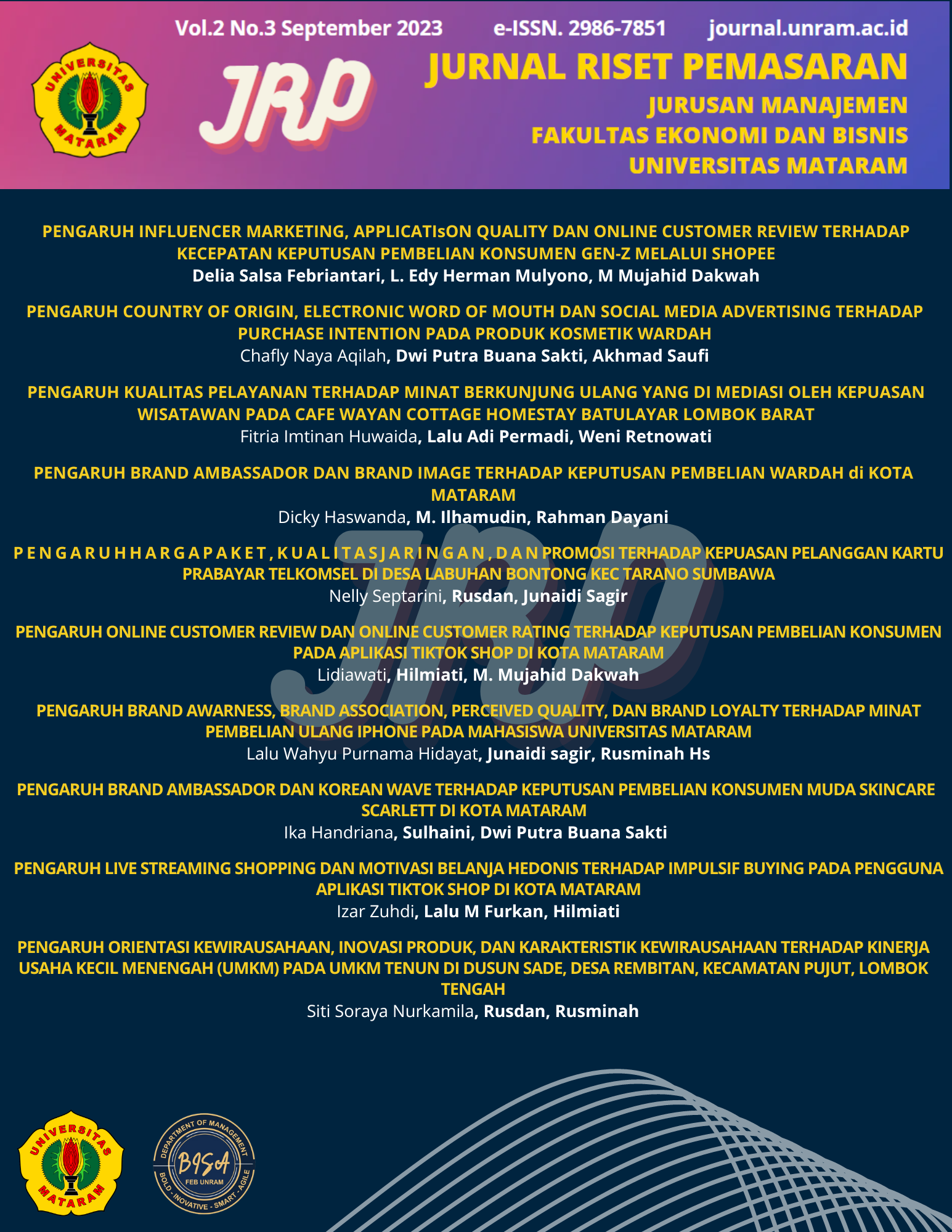 Vol. 2 No. 3 (2023): JURNAL RISET PEMASARAN VOL.2 NO.3 SEPTEMBER